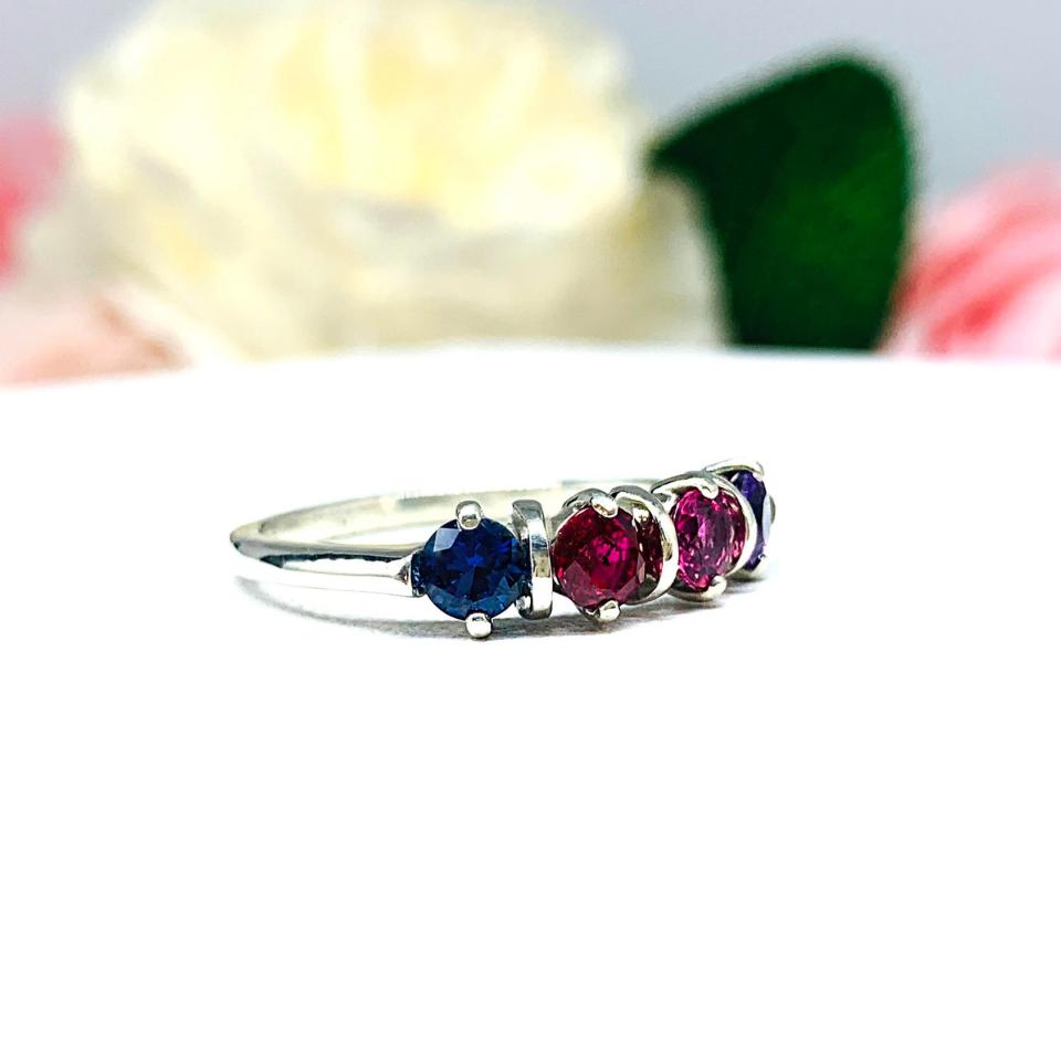 Sterling Silver 4-Stone Birthstone Ring – 4mm gemstones – Mothers or Grandmothers Jewelry