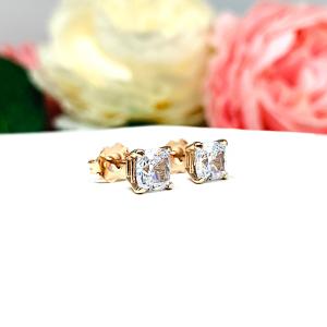 Cushion Cubic Zirconia Stud Earrings – 5mm, 6mm, Sterling Silver, 14K Gold