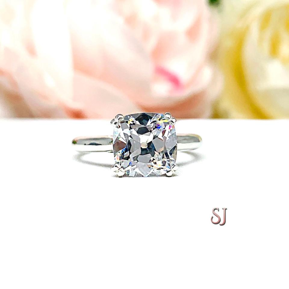 Old Mine Cut 8mm CZ Split Prong Engagement Ring