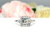 This ring is STUNNING! I love Asscher cut stones, and this ring is just magnificent. It sparkles so much that when I took it outside to see it in the sun, I literally got sunspots from the dazzle of the stone! The side stones are a real perk. Yes, they are small, and when I placed my order I wasn’t sure if they would be too small to have any presence, but they glitter like crazy! I especially like that they are round. I think that’s an unexpected shape when paired with an Asscher; I’ve most often seen trillions or trapezoids, neither of which float my boat. These rounds are the perfect size, and add to the magnificence of this ring. Finally, the mounting is weighty and very well constructed. I just love everything about this ring, and you will, too! Shannon is a lovely person, and I look forward to future purchases from her.