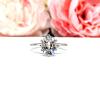 Pictures do not do this ring justice! The stone has such sparkle and dimension. The setting is sturdy without being bulky or taking away from the stone. The quality of the sterling band is top notch and it is absolutely stunning on my hand. I especially loved that the band and setting is sterling silver and not plated in rhodium or platinum that eventually wears off, rending the ring unwearable unless you get it re-plated every 6 months or so. I would much rather have a ring I can enjoy without worry and give it a quick polish when it needs to to make it look as good as new.